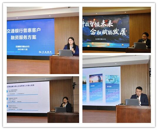 其次进入金融产品宣讲阶段。交通银行烟台分行、北京银行烟台分行、潍坊银行烟台分行,分别介绍了其针对专精特新企业的产品,海通恒信国际租赁股份有限公司介绍了专精特新企业产品和优势。